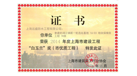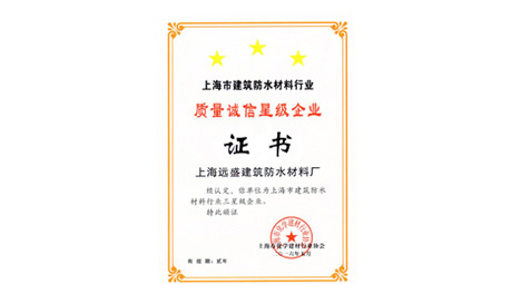 上海远盛成为中国建筑合格分包商及供应商,同年获得上海市防水施工企业“质量诚信星级企业”证书。