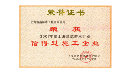 远盛被上海市化工建材行业协会评为“信得过施工企业”优秀施工单位。