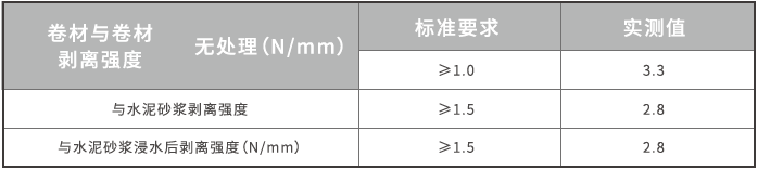 ④整体性好,既能保持自身的粘结性,又能与基层牢固粘结,同时在外力作用下,有较高的剥离强度,形成稳定的不透水整体。