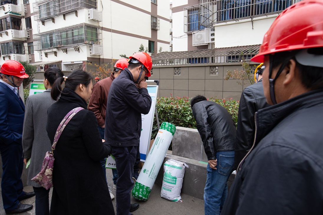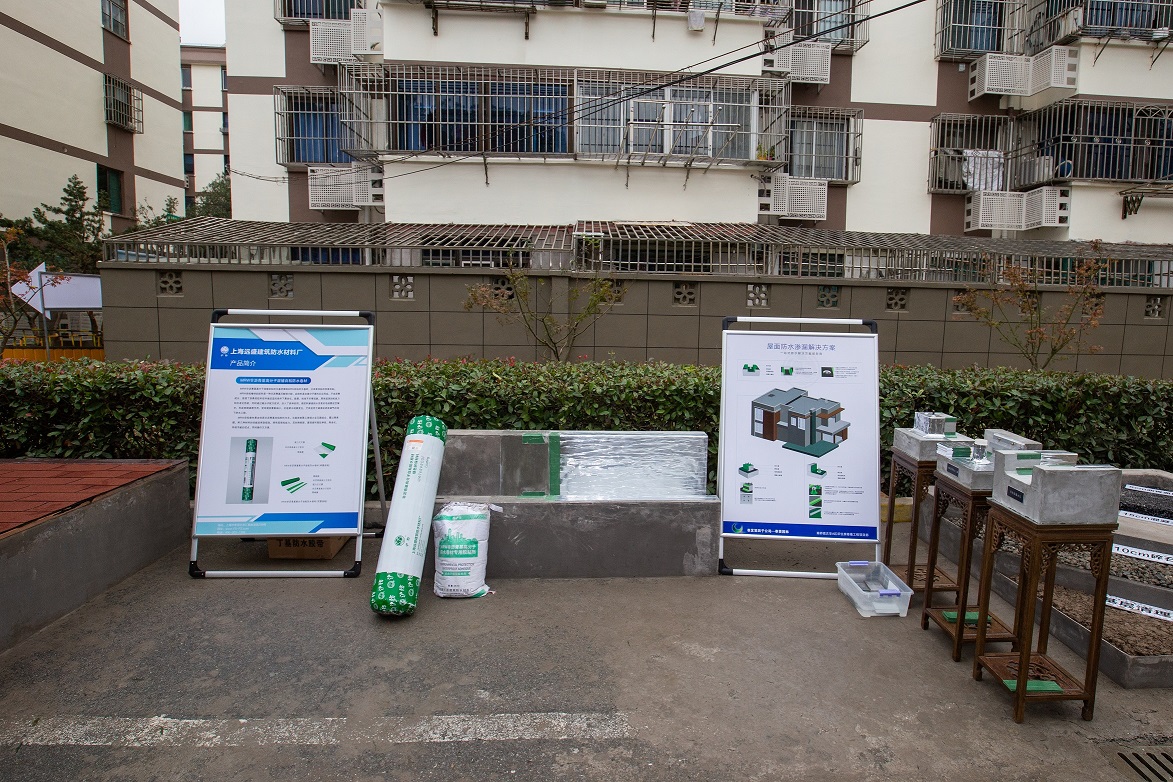 活动现场观摩区共分为半成品展示区、成品展示区、安全文明施工标准化展示区、施工工艺展示区四部分,充分展现项目管理、施工工艺、安全文明等方面的水平。上海远盛在本次观摩会上针对本次修缮工程展示了屋面渗漏防水的解决方案、各节点模型以及主要应用产品沪防MRW非沥青基高分子湿铺自粘防水卷材。