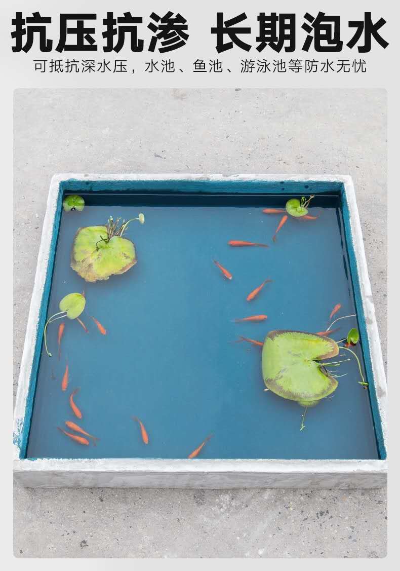 图为沪防K11柔韧通用型彩色防水涂料在简易鱼池中,展示优异的防水性能。