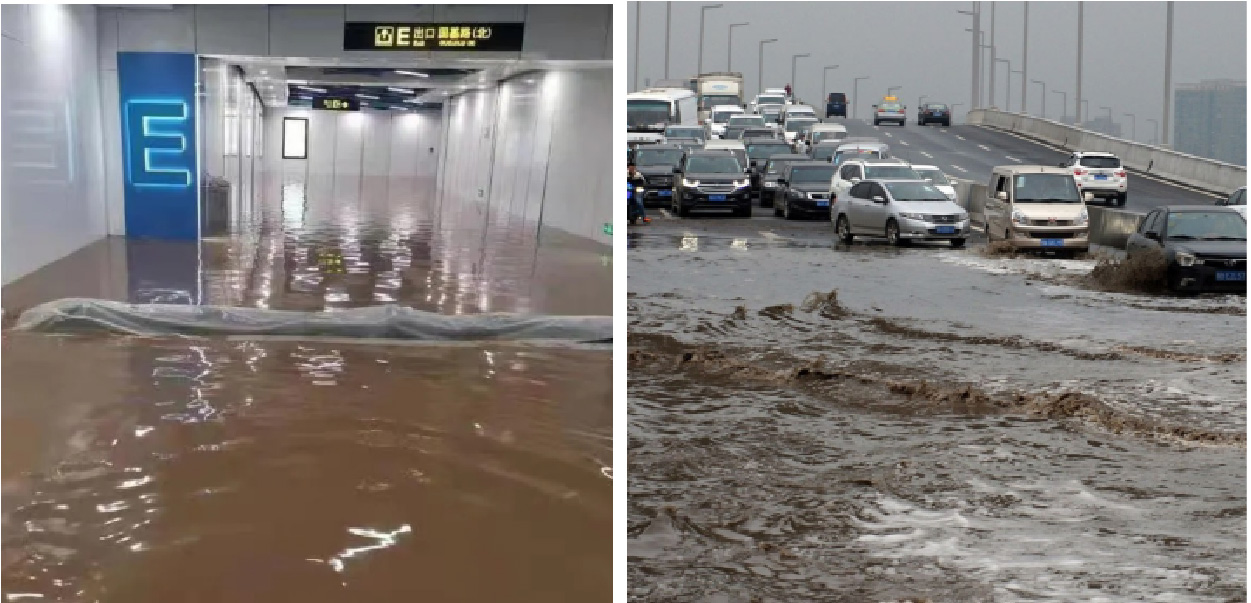 北京时间2021年7月20日(周二)04时至21日04时,郑州12个小时雨量达到645.6毫米,超过了该市全年降雨量,暴雨持续涌入各个地铁站,地面交通全面停运,城市内涝严重。