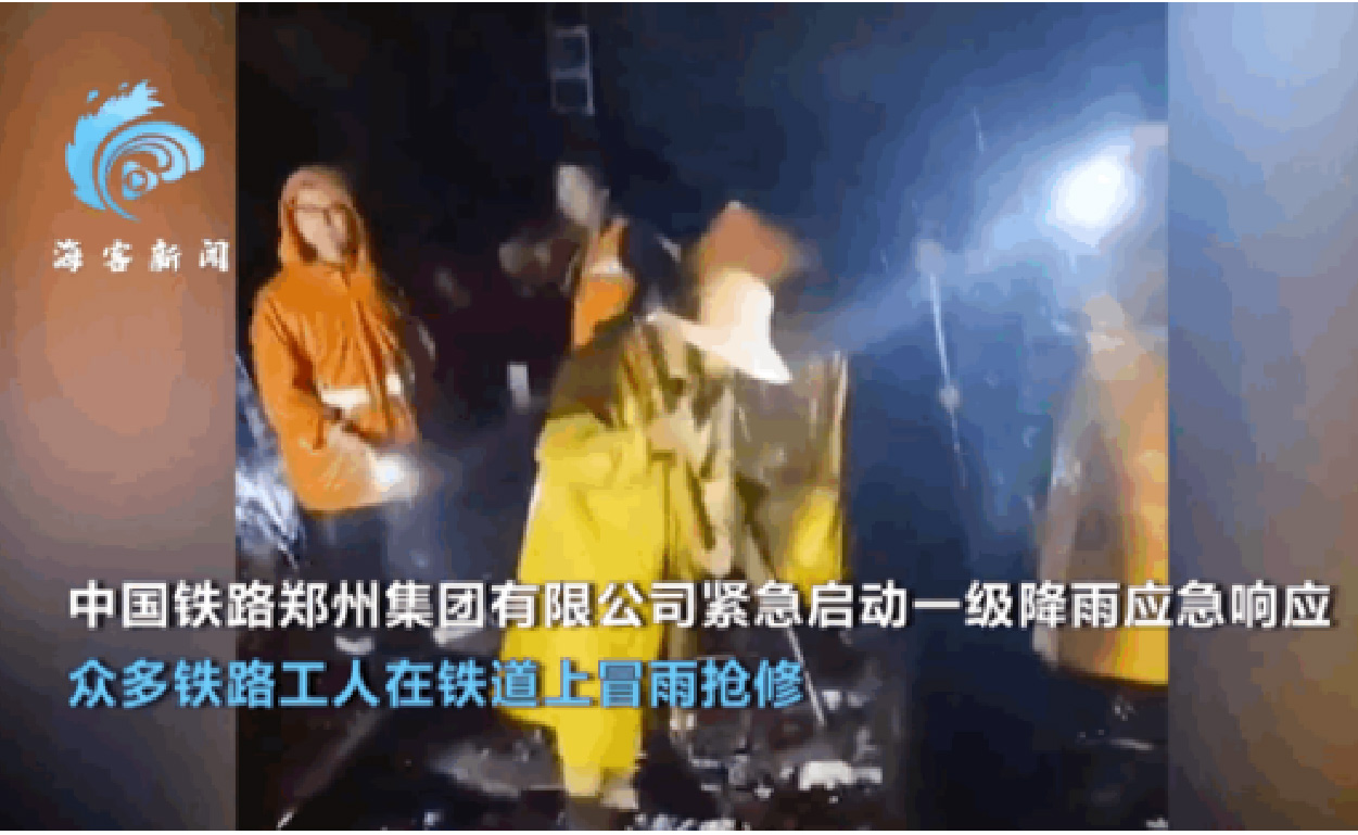 铁路工人冒雨抢修铁路