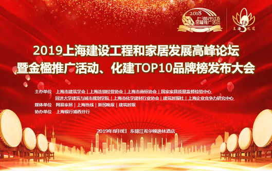 2019年8月8日,第16届上海建设工程和家居发展高峰论坛暨金楹推广活动、化建TOP10品牌榜发布大会在上海东锦江希尔顿逸林酒店举行。